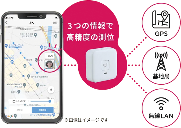 - 3つの位置情報を活用した高精度な子ども用GPS!